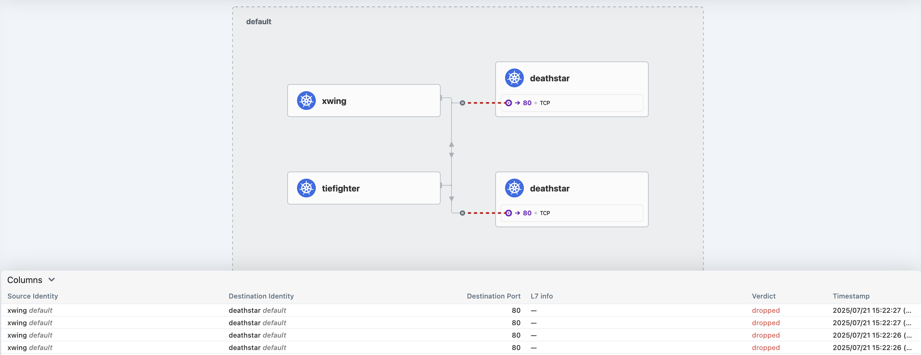 kubectl exec tiefighter -- curl -s -XPUT deathstar.default.svc.cluster.local/v1/exhaust-port
