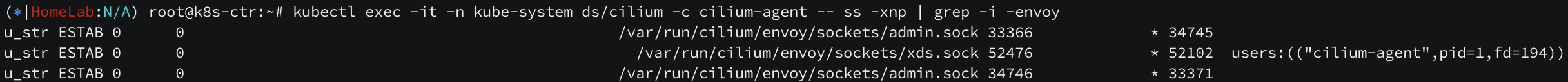 소켓 유형을 살펴보면 cilium-envoy 데몬셋이 HostPath 유형의 유닉스 소켓으로 확인할 수 있습니다.