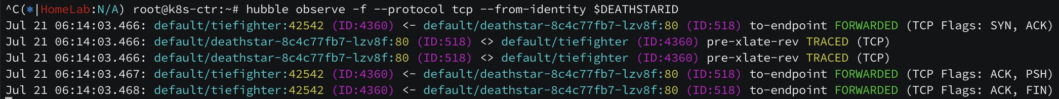 - Cilium 은 StateFul 연결 추적을 수행합니다. 응답 리턴 패킷은 자동으로 허용합니다.