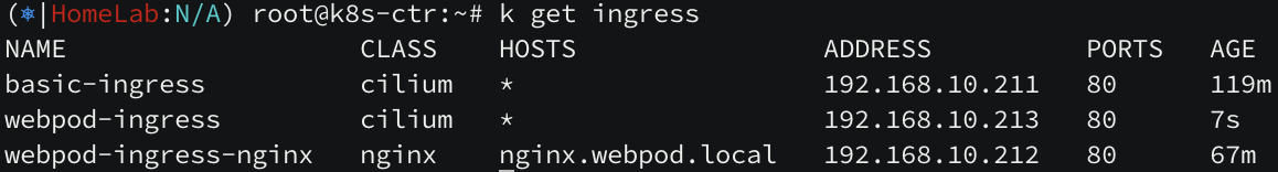 nginx.webpod.local 에 의해 트래픽이 전달되는 것을 확인할 수 있습니다.