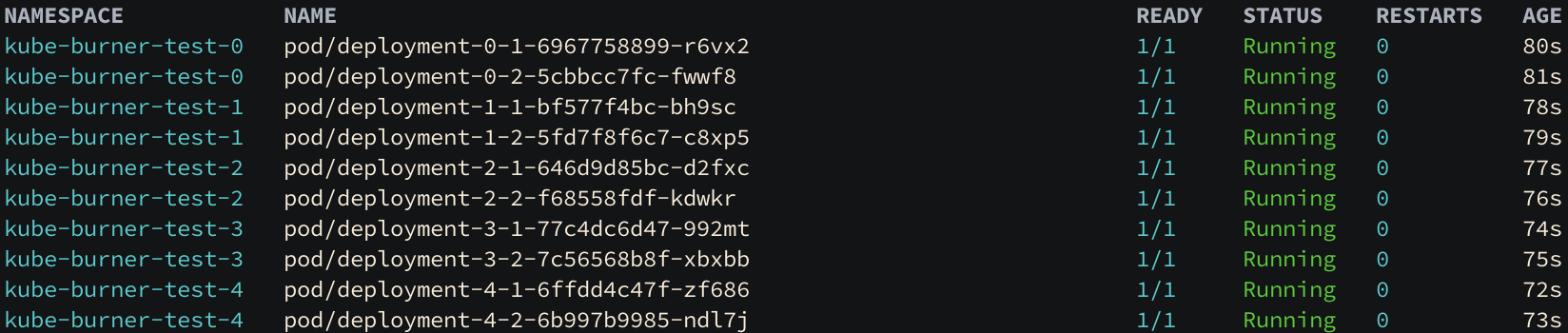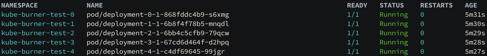 deployment 1개(pod 1개)를 생성하고 삭제하면서 jobIterations, qps, burst 의 의미를 확인합니다.
