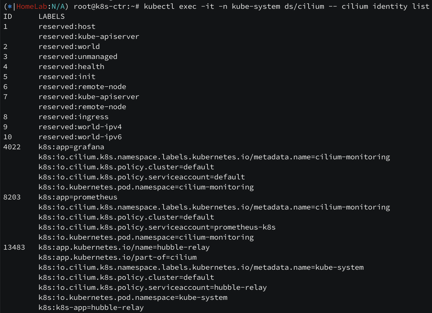 위와 같이 ciliumendpoint 들을 조회했을 때, 동일한 보안 정책을 부여받는 엔드포인트끼리 동일한 security ID 값을 부여받는 것을 알 수 있습니다.