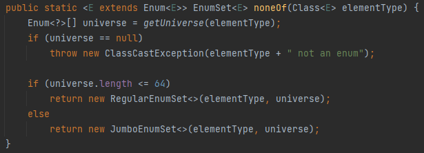 그리고, noneOf 이라는 정적 팩토리 메서드에서 원소의 개수에 따라 하위 클래스의 객체를 반환하는 것을 볼 수 있다.
