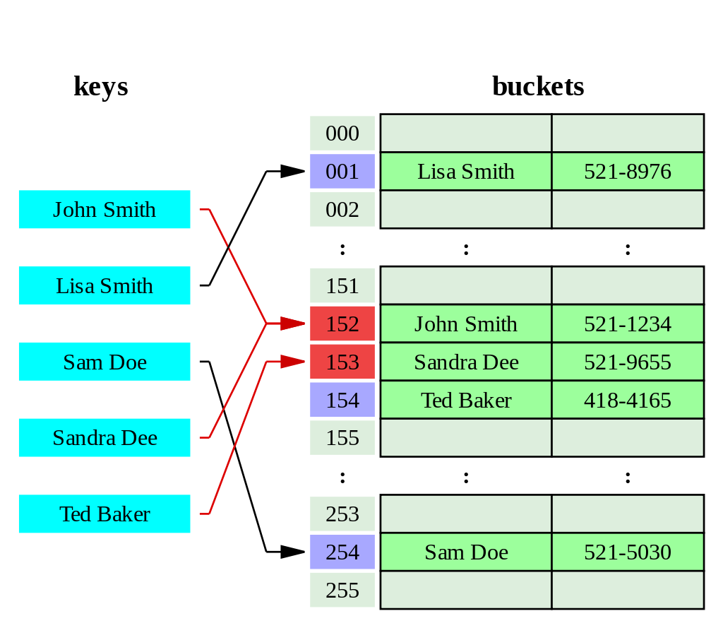 물론 3번 정의에 위반되지는 않지만, 아래와 같이 설계하면 42 라는 키에 모든 아이템들이 순차적으로 쌓일 것이다. 배열이나 링크드 리스트에서 아이템을 검색하는 것과 다를 바가 없게 된다.