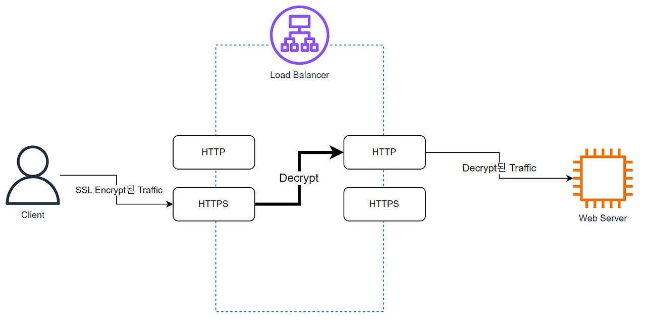 SSL Termination 은 외부 SSL 트래픽을 복호화하여 내부에 평문 트래픽을 제공하고, SSL Passthrough 모드는 그대로 SSL 트래픽을 제공합니다.